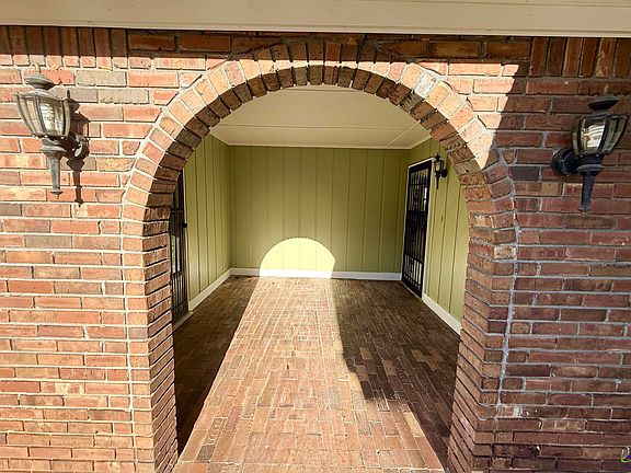 Brick wood-burning fireplaceDouble carportTwo outbuildingsFixtures and mirrorsUpdated windowsLong-lasting metal roofArched brick entry