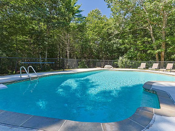 Pool and Price Drop! This beautifully updated and sprawling gambrel tucked can be your new oasis! Tucked into a lovely, private lot in Plympton, the peaceful backyard features a fabulous outdoor area including a heated gunite pool which was fully resurfaced two years ago! Large stone patio is idea for days BBQing with friends and family. Inside one will find a lovely tiled entry with turned staircase and an expansive front to back living room filled with sunlight thanks to the two large picture windows. A formal dining room with french doors and another bay window easily seats ten. The gourmet kitchen features beamed ceilings, granite counters, breakfast island, and a fabulous view of the pool. The laundry room is located off the kitchen for easy access outside and the vaulted beamed family room flows to the outdoors with a large slider access in the summer and a huge stone fireplace for the winter. Upstairs there is a large primary with full bath and three more bedrooms and shared bath. Loads of updates!