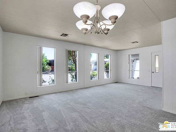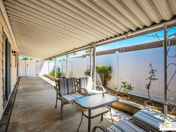 This home presents a seldom seen opportunity in today's market: a great price! Featuring 2 bed/2 bath, living, dining, kitchen, family room, large outdoor patio with mountain views, new carpeting throughout, newer fence, HVAC and evaporative cooler, 2 car tandem carport, 2 outside sheds, and so much more! Located in the highly desirable 55+ Palm Springs View Estates where the monthly rent includes trash and water, pools, spas, clubhouse, and best of all it's conveniently located near shopping, restaurants, hiking, golfing, and downtown Palm Springs. Browse the photos and video tour, then come see this delightful home for yourself!