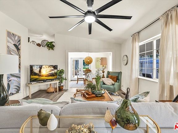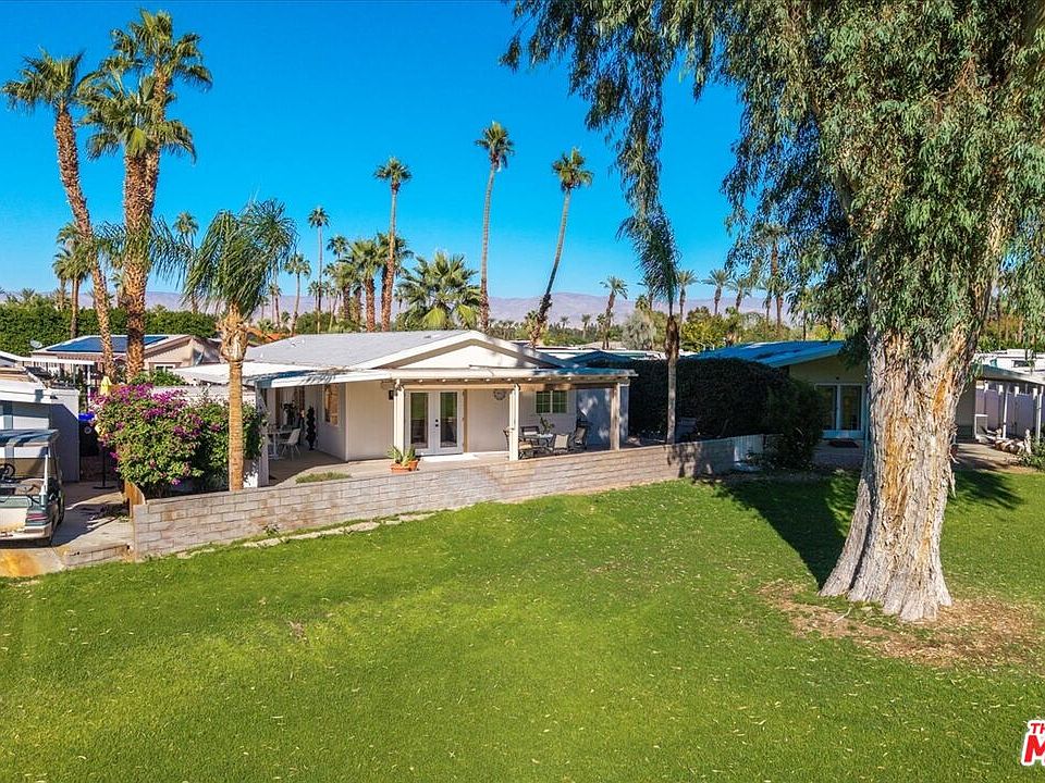 Introducing another stunning creation by Rick Metz, one of the Coachella Valley's most talented residential designers. This unique reimagining and repurposing of a mobile home interior is sure to inspire a "Wow!" the moment you step foot trough the double-door entry and into the grand foyer. Offered turn-key & fully furnished, this totally remodeled & renovated property features a two bedroom / two bath primary residence AS WELL AS an attached private casita / guest house / in-law suite - complete with it's own separate entry, kitchen, bath, laundry, and private driveway! This clever use of space enables a homeowner to take on a "roommate" and offset monthly living expenses while still enjoying the privacy of their own residence. Located not far from a community pool, spa, sauna & gym, the main residence also features an updated kitchen w/ high-end appliances & large walk-in pantry, a formal dining room, living room with vaulted ceilings, two fully renovated baths, dual but separate vanities in the primary bath, laundry room, two private covered patios, stunning views of the golf course and mountains, a koi pond (you provide the koi) as well a utility shed, golf cart garage, attached carport with room for multiple cars... The list goes on and on. Date Palm Country Club is THE premier 55+ MH golf community in Cathedral City. Monthly lot rent is only $1,650. Amenities and activities abound. See it today!
