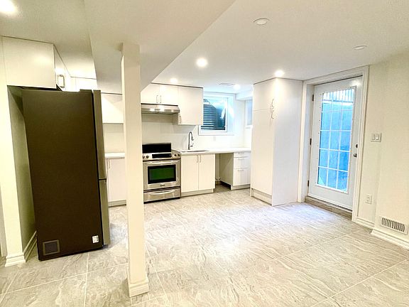Legal, newly renovated walkout basement apartment featuring high-quality stainless steel appliances, a private entrance, and in-suite laundry. This bright unit offers a spacious living room with ample natural light, a large bedroom, and a versatile den suitable for a home office or additional storage. Includes one designated driveway parking space. Tenant responsible for 30% of utilities.