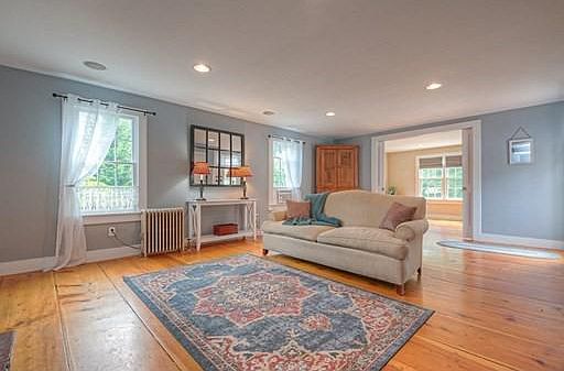 Welcome to Nathaniel Whitneys house circa 1739. Nestled in the downtown historic district, this exquisite property features the antique sophistication of the time but has all todays modern conveniences. To note a few, youll enjoy a beautiful open and updated kitchen with soap stone countertops, farmers sink, custom cabinetry, and newer appliances. Off the kitchen is a gorgeous dining room with a fireplace and closet, a magnificent living room with another fireplace and built-ins, 3 very large bedrooms, updated bathrooms, wide pine floors, and an expansive family room that opens to a sunroom. The lower level offers 2 more rooms and plenty of storage. The grounds boast of a gorgeous backyard, beautiful perennials, and a lovely mahogany deck. The love of this home is shown by the upkeep and will not disappoint the utmost discerning buyers. Please see attached for all the amazing updates and improvements! Minutes away from schools, shopping, trails, and easy access to major routes!