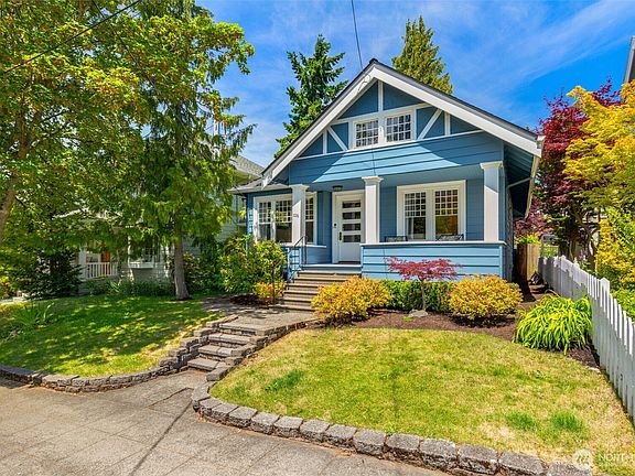 Enjoy the best of Queen Anne living in this beautifully updated Craftsman with amazing walkability! Original charm abounds in friendly covered front porch, hardwood floors, high ceilings, detailed millwork, leaded glass built-ins, and fireplace. The well designed updated kitchen opens to the deck and back yard, with turf lawn and lush landscaping perfect for summer entertaining. The main floor also includes a large bedroom and full bath, plus a dedicated office/den. Upstairs, the spacious sunlit primary suite offers a luxurious retreat with a full marble bath and dressing room/ giant walk-in closet! A rare blend of charm and function on top of the hill, just steps to cafes, dining, boutique shopping, gyms, yoga, parks, schools & transit!
