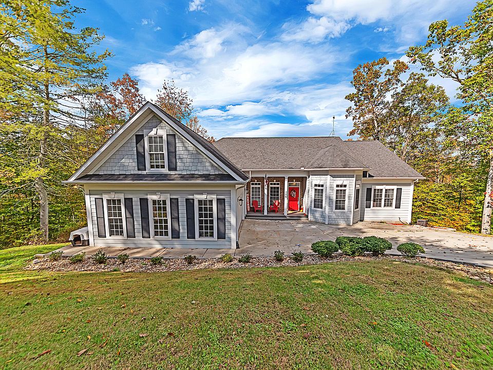 Water Front Custom built home with over 7 acres of privacy! Ranch style floor plan with master and 2 bedrooms on the main floor. Enjoy your mountain and water views from the main level screened in deck! Finished walk out basement includes rec area with Denon surround sound system and speakers, bedroom and full bath, storage room, and additional flex area. The basement also features another deck to enjoy the scenic views. Easy access to your own private fishing spot by taking a stroll down the walking trail in your backyard. TONS OF STORAGE- Two car, 40 ft deep garage with work bench and cabinets. Privacy and top of line community amenities.... Don't miss this rare opportunity to have it all!