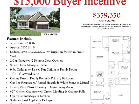$15,000 Buyer Incentive with Recommended Lender. Ranch-Style, Keystone Model, Under Construction in NEW Blue Ridge Trail Community! Community Access to the Fountain Inn Extension of the Swamp Rabbit Trail. 3 Bedroom - 2 Bath, Approx. 2100 Sq. Ft. Sodded Lawn (Disturbed Areas) w/ Irrigation System in Front Yard - 2-Car Garage w/ 2 Remote Door Openers - Smart Home Manager System - 9 Ft. Ceilings w/ Raised Pan Ceiling in Family Room - 12' x 11' Covered Patio - Ceiling Fans in Family Room & Primary Bedroom - Gas Log Fireplace w/ Raised Hearth & White Stone to Mantel - Luxury Vinyl Plank Flooring in Main Living Areas. Kitchen Features: 42" Cabinetry w/ Crown Molding & Cabinet Pulls, Quartz Countertops & Stainless Steel Appliance Package. Quartz Vanities in All Baths - Ceramic Tile Flooring, Double Sinks, Garden Tub & Separate Ceramic Tile Shower w/ Frameless Glass Door in Primary Bath. 1+8 Builder Warranty Included.
