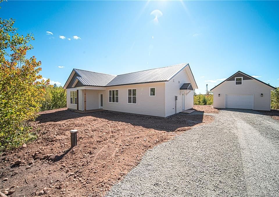 New Construction - 1,600 sq. ft. custom-built bungalow located in quiet community of Tracy. Set on just over 2 acres, this property is the perfect blend of modern style, functional design, and peaceful country living - all while being within easy reach of Fredericton and Oromocto. Open-Concept layout is bright and inviting, with huge living and dining area, heat pump for efficient heating and cooling. Kitchen is beautifully finished with large island featuring quartz countertops, modern pendant lighting, walk-in pantry and plenty of cabinetry, making it a gathering space for family and friends. Convenient mudroom located off the side entrance, keeping the home organized and practical for everyday living. Three bedrooms and two bathrooms. Primary bedroom is complete with large walk-in closet and private ensuite with sleek finishes, while custom tile shower adds touch of luxury. Durable flooring, neutral tones, and black hardware run throughout the home, creating clean and modern aesthetic. Outside, you’ll find 1.5-car detached garage with loft, fully insulated and wired with electrical, offering endless possibilities as workshop, studio, or storage space. Property is surrounded by trees for privacy. Generous 2-acre lot provides plenty of space to enjoy outdoor living, gardening, or simply relaxing. This thoughtfully designed home is ready to welcome its first owners.