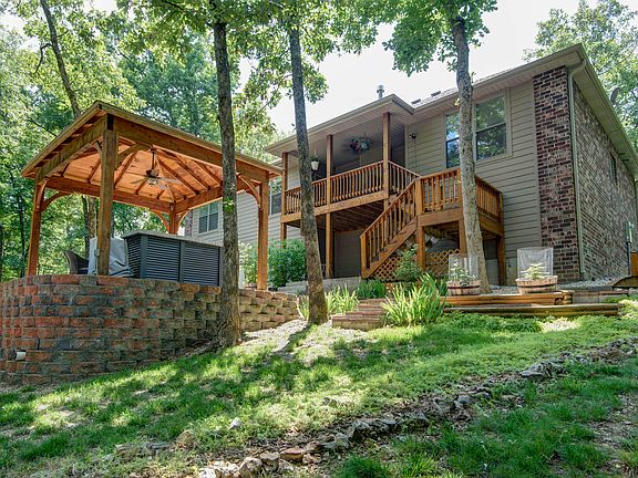Perfectly sized, perfectly maintained, and perfectly located, this is what everyone wants! Situated on a beautifully manicured, almost 1/2 acre, golf-course-pretty lot, right in the center of town in one of Branson's most premier neighborhoods, this home has everything a buyer could wish for: All one level with just under 2000 square feet, with 9 and 12 foot ceilings wrapped in crown molding, large airy and light rooms, gorgeous kitchen with lovely countertops, stone fireplace, and a covered back deck overlooking the woods with steps leading down to the gazebo area with a fire pit. Low maintenance brick and stone on 3 sides with Hardie board siding on the back. The master closet is huge, and there are plenty of storage areas throughout, big 3 car garage, and pull down attic access. Less than 5 minutes to Country Mart, Branson Schools, dining, golf, and all that the area has to offer! Plan to see this one, and you won't have to look any more!