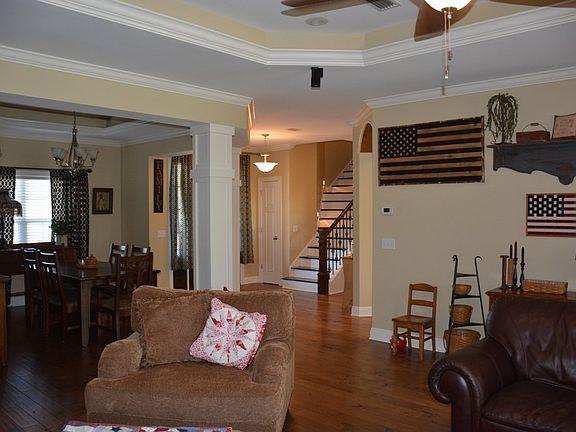 Elegant. On cul-de-sac. Sparkling Pool. Large screened porch... Foam insulation (this month the electric bill was 108.00). Large fenced yard. Hardwood floors. Barrel ceiling. Out of this world kitchen. Built ins. Upstairs there is a bedroom and bathroom w/ a media room w/ projector. 3 bedrooms downstairs. Storage galore. Spacious master bedroom. Laundry off master. Half bath. Wonderful entertaining home with a split floor plan. Lot is .83 acres. Community pool/clubhouse and fishing lake.