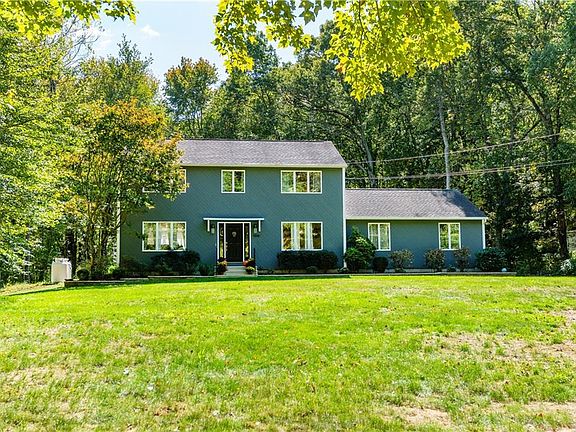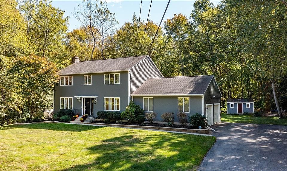 Privately set back from the road on over 3 acres, this spacious 3-bedroom, 2.5-bath Colonial offers a rare combination of privacy, comfort, and modern convenience. A partial open floor plan creates an inviting flow throughout the sun-filled living areas, while the formal dining room is perfectly placed next to the granite kitchen, ideal for hosting and gatherings. The main level also includes a laundry area, central air, and direct access to a private deck overlooking the tranquil yard. Upstairs, the primary suite is a true retreat, featuring a massive walk-in closet and a spa-like bath with double sinks, a shower, and a whirlpool tub. Two additional bedrooms and a full bath complete the second floor. The oversized 2-car garage provides ample room for vehicles, storage, or a workshop. Below, a large basement offers abundant storage and excellent potential to be finished for additional living space. It also houses a brand-new Navien on-demand heating system, ensuring energy efficiency and peace of mind. With 2,016 sq. ft. of living space, generous storage throughout, and a serene wooded setting just minutes from conveniences, this property is the perfect balance of function, privacy, and comfort—an exceptional opportunity in Johnston.