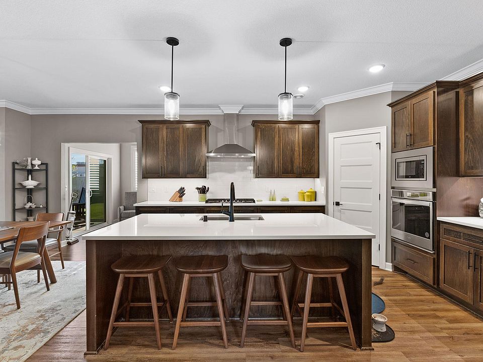 natural lighting, 9 foot ceilings, luxury vinyl plank flooring throughout, gourmet kitchen with large center island, quartz countertops, custom cabinets with pull-outs, stainless steel appliances, tile backsplash and more. Informal dining space, 3 sizable bedrooms, including the primary suite with private bathroom and huge walk-in closet. Spacious living room with gas-burning fireplace, den/flex room, oversized laundry/mudroom, and a screened-in porch overlooking the backyard. Massive finished garage with epoxy flooring. Enjoy beautiful MN summer nights around a stunning stone fire pit. Location is prime,