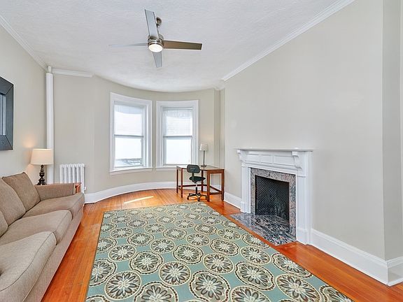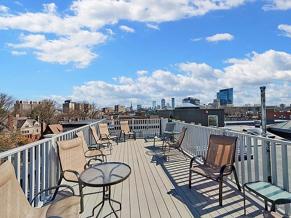 Stunning & Spacious South Facing 2-Bed Condo in a Back Bay Style Bldg In The Ultra-Desirable Cottage Farm Historic District & St Mary's Neighborhood w/Deeded Parking & Sweeping Boston Skyline Views From The Common Roof. Tasteful Eat-In-Kitchen w/Maple & Glass Cabinets, Granite Counters, Stainless Appliances, Subway Tile Backsplash & Breakfast Bar. Sunny Bow Front Living Rm w/Black Granite Fireplace, Built-In Book Shelves, Beautiful Crown Moldings & Ceiling Fan. Elegant BathRm Tiled w/Tub & Shower. Convenient Entry Foyer W/Coat Closet. Great Open Layout w/High Ceilings, Newer Oversized Large Windows, Hardwood Flrs, All Well Sized Rooms & Closet Space Galore Throughout. Stone’s Throw To Everything. 1 Block To Green Line T Station, 1 Stop To Kenmore/Fenway, Trendy Shops & Chic Restaurants. Hall’s Pond Nature Area & Amory Park At Your Back Door. Walk To Longwood Medical & Coolidge Corner. Quick Access to Storrow Dr & Main Routes. Laundry In Bldg.