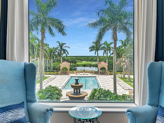 Step into luxury with this beautifully furnished 3-bedroom, 3.5-bath skyhome in the prestigious Aversana at Hammock Bay Golf & Country Club. From the moment you exit your private elevator, you'll be welcomed by a wide hallway featuring elegant crown molding and brand-new, modern large-format tile flooring that flows throughout the main living areas. The open-concept layout showcases breathtaking views from every room. The chef's kitchen is both functional and stylish, with light stone countertops, crown and ornamental molding, and plenty of room to cook or entertain. Enjoy two expansive terraces—one screened for peaceful mornings with your coffee and the other open, perfect for enjoying Naples' famous sunsets. The primary suite is a true retreat, offering terrace access, tranquil views, and detailed ornamental molding. The spa-inspired bathroom features a raised ceiling, creating an airy, open feel that enhances the luxury experience. Two additional en-suite bedrooms also include ornamental molding and share direct access to the sunset terrace, making guests feel right at home. Aversana residents enjoy top-tier amenities, including a resort-style pool and spa, outdoor grilling pavilion, fitness center, movie/media room, and two guest suites for visiting family and friends. This unit also includes two covered parking spaces and a secure storage unit. Perfectly located near Marco Island's pristine beaches, fine dining, boutique shopping, and the Marco Island Executive Airport—this stunning skyhome combines elegance, comfort, and convenience in one perfect package