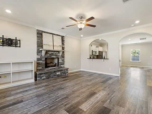 Inside, the main-level primary suite is a true retreat, featuring a spacious walk-in closet and a bathroom with separate shower and inviting garden tub. Upstairs, two oversized bedrooms each include walk-in closets, along with a full bath and a vaulted bonus room offering endless versatility—media room, playroom, or home office. Added convenience comes with walk-in storage accessible from both bedroom closets.