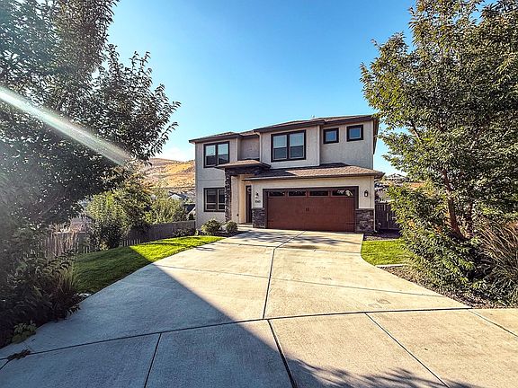 Located at the end of a quiet cul-de-sac near White Bluffs Elementary in Richland, this stunning 4-bedroom home is a rare gem for a rental. Feel cozy at home next to the gas fireplace in the living room, which seamless transitions into the formal dining room. Fall in love with the large kitchen featuring an island, gas stove, quartz countertops, and stainless steel appliances. Off the kitchen, enjoy the convenience of a mudroom area with a half bathroom and access to the attached two-car garage. Upstairs, the main suite leads to a beautiful bathroom with an oversize shower and walk-in closet. Three other upstairs bedrooms accompany a full bathroom down the hallway and laundry room with washer and dryer hookups. Relax and play in the massive, fully-fenced backyard during the day and spend your evenings in the covered back deck with views of Badger Mountain.