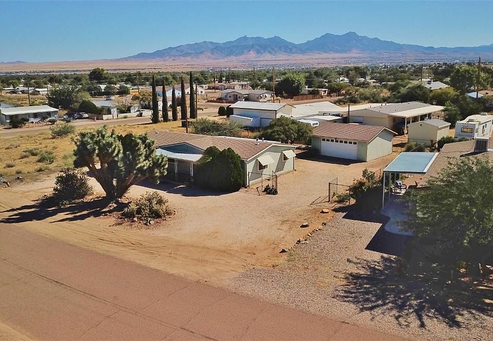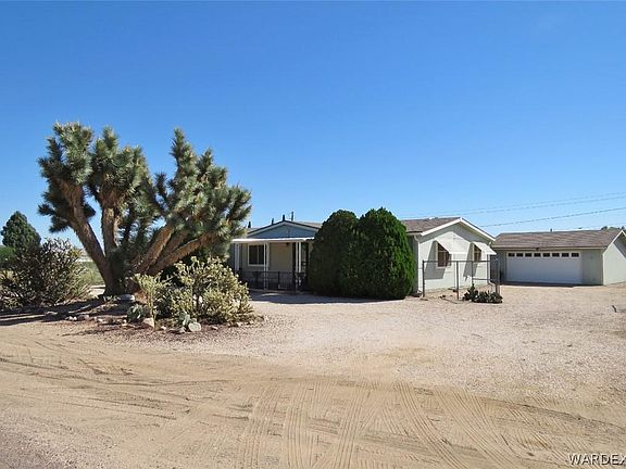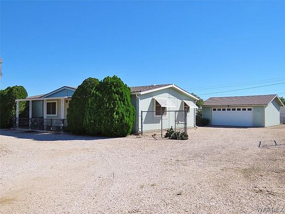 Cute & Clean with Storage Galore ~ This Two Bedroom Two Bathroom Groundset Doublewide has a 24 X 20 deep Detached Garage and sits on a Big 13,000 sf lot. Built in 1988 this home has 1,352 sf, the living room has built in bookshelves and is open to the 9 X 9 dining area that has a built in hutch. Gally kitchen has a built in cutting surface, gas range, counter top microwave, refrigerator and one year old dishwasher. This split floor plan has the large main bedroom on the east side of the home with a full wall of closets, attached bathroom with lots of storage, easy access toilet and a walk in shower. Bedroom two is 14 X 10.10 and sits on the west side of the home, with the hall bathroom right outside the door. Hall Bathroom has a single sink, big vanity and tub shower combo. Huge laundry room has a built in desk, tons of storage, room for an extra fridge or upright freezer and front loading Maytag washer and electric dryer that are less than a year old. Nice open floor plan with vaulted ceilings, ceiling fans, window blinds and wood laminate floors throughout. Heating and air unit installed in 2005 along with most windows. Front and back covered patios, rain gutters, security doors, house was reroofed in 2013 and new roof on garage 2022. Property is chain link fenced and cross fenced, with a 16ft RV gate, circular front drive, mature landscaping and a big Joshua tree out front. Home sits close to Stockton Hill Rd. on a nice clean street ~ 1060 E. Edie Way, Kingman AZ.. Seller will be reviewing all offers on Wednesday 10/19/2022 at 6:00pm.