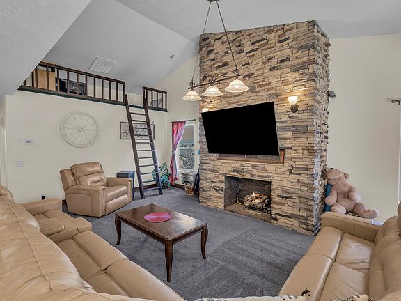 Enjoy million-dollar views from every bedroom in this stunning custom home. A serene water feature welcomes you, leading to a chef's kitchen with a 6-burner gas stove, island, and restaurant-grade fridge. The 1,100+ sq. ft. master suite is a private retreat with dark hardwood floors, a gas fireplace, sitting area, jetted tub, dual-head slate shower, and walk-in closet. The entertainer's backyard features a covered patio and waterfall. Unwind in the private theater room or enjoy the great room's floor-to-ceiling fireplace and play loft. With 4 bedrooms, a large office (5th bedroom option), 3 full baths, a detached workshop (casita potential), 2-car garage, and ample storage, this home offers luxury, comfort, and functionality. Don't miss it!