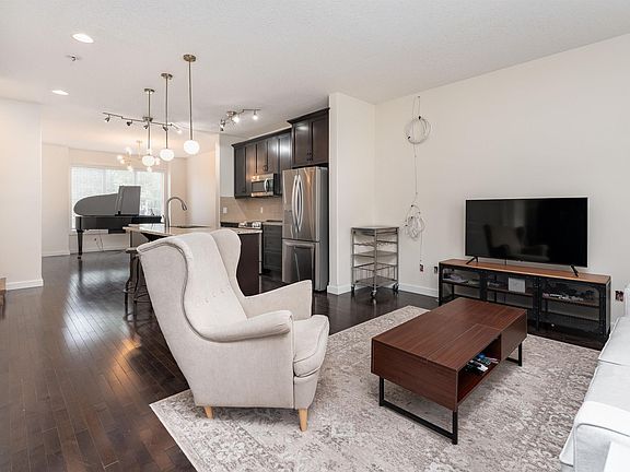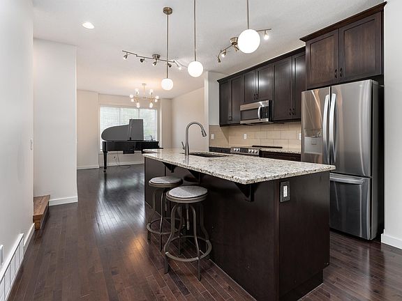 Welcome to this stylish 3-storey townhome in the charming and convenient community of Griesbach! The open-concept main floor offers flexible living and dining spaces, with a central kitchen featuring ceiling-height cabinetry, granite counter tops with a large island, newer appliances, fresh paint, no carpet and chevron style floors in the primary suite. The second floor offers two spacious bedrooms with large closets, a 4-piece bath complete with soaker tub and separate shower, plus convenient upstairs laundry. The top floor is your private primary retreat, featuring vaulted ceilings, a charming Juliet balcony, and a spa-like 5-piece ensuite with dual vanities, a soaker tub, separate shower, and a massive walk-in closet you’ll love. To round it off, enjoy a landscaped yard, central AC and detached garage. Located just steps from walking trails, lakes, shops, and more — this is Griesbach living at its finest!