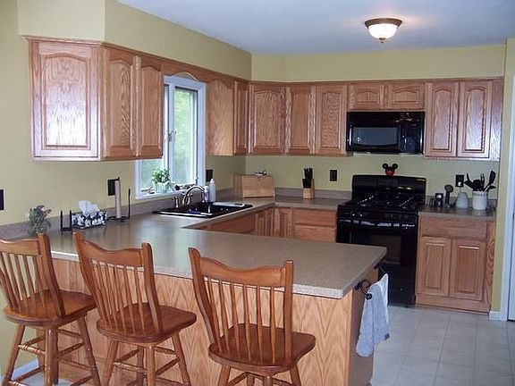 Captivating Colonial offers 4 very large bedrooms, 1.5 baths, 1st floor laundry convenience (washer & dryer are very new). Remodeled half bath with ceramic tile floor. Kitchen offers Corian countertops with breakfast bar, oak cabinetry, 2-yr-old dishwasher, refrigerator & gas stove are 9-yrs-old. Huge great room has woodburning fireplace, laminate floor. Replacement windows at front & side of home. 2012 gas furnace has a brand new motherboard. Hot water heater new in '14. New architectural roof in August. 200 amp electrical service updated all the way to the main. Walkout basement has a new anti-gravity pump in twin sinks. 12'X16' deck off slider in kitchen leads to a patio with a fire pit. Canopy cover over deck remains.