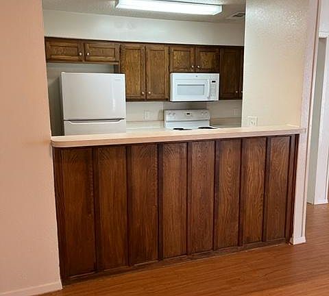 Duplex apartment with 2 bedrooms, 1 bath, and a 1 car garage. All kitchen appliances furnished. Space and connections for washer and dryer. Near schools, shopping, and parks. Fenced back yare, but no pets. Tenants pay all utilities. No pets