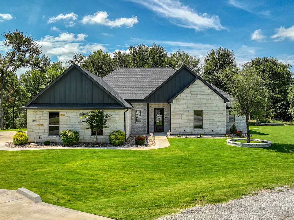 IMPRESSIVE Private Cul-De-Sac home with TOWERING TREES on 2+ acres in BROCK ISD! Amazing Custom Home Built in 2023 & loaded with lifestyle upgrades including SPRAY FOAM INSULATION, WATER SOFTENER SYSTEM, TWO WATER HEATERS, GUTTERS, IRRIGATION SYSTEM, LUSH SOD, and AT&T OPTIC FIBER! This modern MAGNIFICENT Texas retreat nestled on 2+ acres offers the perfect blend of seclusion & style. Fantastic floor plan with 4 large bedrooms and 3 full bathrooms. Split bed layout adds privacy while open living area stuns with vaulted beamed ceilings, floor-to-ceiling stone fireplace, and wood-look tile flooring. Beautiful kitchen plus an awesome BUTLER'S PANTRY with window for herbs. Great mudroom area with built-ins for organization and a huge laundry room that leads directly to the primary suite’s ensuite. Impressive Oversized Primary master retreat features gorgeous checkerboard beamed ceiling and exquisite ensuite with a spa-like walk-in shower, free standing soaking tub, two separate vanities, & a huge walk in closet. Secondary bedroom also features a private ensuite. All bedrooms are LARGE with awesome closets. Step out back to the private backyard oasis with towering trees. Private well so no water bill! Brock ISD and not too far from I20 for an easy commute to all the conveniences of Brock & Weatherford! (Bonus feature includes property is already plumbed for gas)