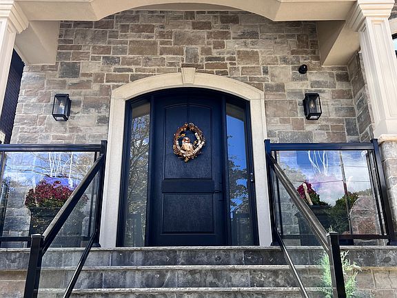 Move in ready Luxury home in Etobicoke.Very spacious custom home with double car garage& double driveway with parking for extra 4 cars.Beautiful house featuring brick and stone work on the outside with oversized windows that provide lots of light.High ceiling foyer with oversized closet and open stairs lead to main floor featuring powder room, office with french doors, living room with gas fireplace. Round coffered ceiling in dining room, centre island in kitchen that overlooks backyard trees.Stainless steel top appliances and quartz counters in kitchen.Breakfast area as well.Family room with gas fireplace and walk out to deck.Stairs lead to upstairs hallway with big skylight and access to fairly huge Primary Bedroom featuring walk in closet,5 piece ensuite bath with free standing tub and dual vanity sink.Other 3 bedrooms on the same floor all come with own ensuite baths and 2 with walk in closets as well.Laundry on the same level and linen closet for your convenience.Finished above ground basement features 2nd Family room with glass enclosed wine storage wall, full bath, extra bedroom and rec room.Walk out from basement to backyard and garage.Close to subway station, airport,city.Very desirable school district.Close to park, shops,mall.Amazing house great for entertaining and very comfortable to live in.