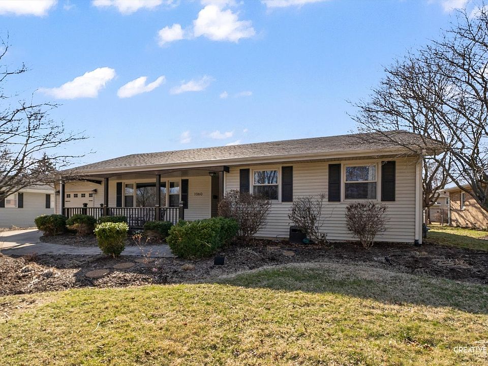 Welcome to this charming and updated ranch-style home, where warmth and comfort await! A brick paver walkway and beautifully landscaped yard guide you to an inviting front porch, setting the perfect first impression. Step inside, and you'll immediately notice the abundance of natural light streaming through the large picture window in the living room. The space is enhanced by hardwood floors that extend into the bedrooms. The updated main bathroom features heated tile floors, a modern vanity, tiled tub walls and new lighting. The primary bedroom offers dual closets and an attached bathroom with shower for added convenience. The spacious kitchen, updated in 2024, is a chef's dream featuring freshly painted cabinetry and hardware, sleek new quartz countertops, a modern single sink with faucet, upgraded lighting with dimmers and GE stainless-steel appliances, including a beverage wine fridge. The functional peninsula bar, complete with recessed lighting, and premium luxury vinyl flooring add both practicality and style. A designer-inspired accent wall in the dining area perfectly completes this beautifully modernized space. The full-partially finished basement has endless opportunities to double your living space. It boasts fresh carpeting on the stairs and rec room, ample storage, and a newer washer and dryer with a utility tub. Water Heater installed in 2018. Outside, the roof and gutters were replaced in 2018, alongside recently added gutter guards and a full fenced-in backyard. Energy efficiency has been enhanced with attic insulation, and the extra-deep garage plus a shed with a newer roof provide plenty of storage solutions. A double-wide driveway adds convenience, and the location is unbeatable in this quiet neighborhood. Located near I-88, shopping, schools, and restaurants. This home is a true treasure, blending modern upgrades with cozy living-don't miss your chance to make it yours!