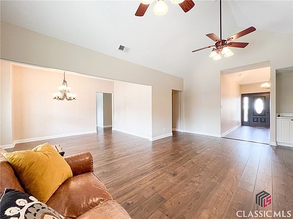 This Charming 4 sided brick ranch home in Jennings Mill Country Club has lots to offer! Located on golf hole 9, this 3-bedroom, 2-bathroom home has a nice foyer, spacious living room with vaulted ceiling, white, bright kitchen with updated appliances and dining room. There is newly installed LVP flooring and plantation shutters throughout. The bedrooms are on separate ends of the home giving nice privacy to the master suite. Enjoy looking out to the golf course from the large covered porch off of the living room. New roof and garage door opener are an added bonus! Enjoy the benefits of the Homeowners Association (HOA), which covers common area maintenance, security, and lawn care. Located in sought after Oconee County, very convenient to the loop, 316, and Athens Clarke.