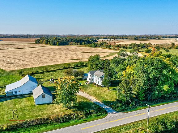 Drive by and view the beautiful country setting for this spacious two story farmhouse that boasts character throughout, and is the first time on the market. Built in 1930, this home has great features to the property, including a round brick corn crib built by hand by the original homeowner. There is a barn with stalls and a hay loft, which has a single car garage in the back. A larger carriage house, chicken coop and little wood shed are also spread out around this 3 bed and 1.5 bath Deer Park Township home, which is settled on 2.4 acres with miles of fields around. Interior features include original woodwork, with some original hardwood floors and two separate staircases to access the second floor. Plenty of space to spread out with two living rooms and a separate dining room, as well as an open kitchen. Another great aspect of this well cared for home, is a main floor laundry room. A new septic system was installed in 2016 and a new a/c unit in 2020 and new furnace installed December 2022. A new plat of survey has been completed, and will be provided. This home is being sold as-is, all measurements approximate. Come take a look and enjoy the history of this home.
