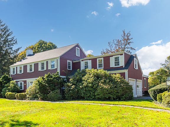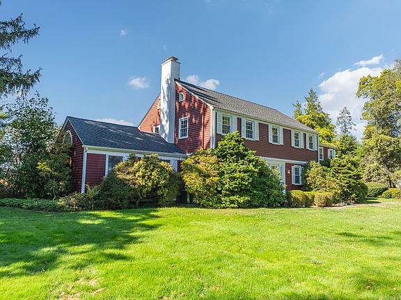 Beautifully bright and sunny Center Hall Colonial set back from the street on a beautifully landscaped 0.84-acre lot with a gracious front yard and expansive backyard. This home offers wonderful street presence and a welcoming flow throughout. The spacious Living Room features a wood-burning fireplace and a stunning picture window that brings the outdoors in. Adjacent is a large Family Room with cathedral ceilings, built-ins and a wall of windows overlooking the backyard. The bright Dining Room includes a bay window with lovely views and original corner cabinets. The remodeled eat-in Kitchen showcases custom cherry cabinetry, granite counters, a center island, and top-of-the-line appliances: VIKING gas range, hood, and microwave, SUBZERO refrigerator, and BOSCH dishwasher. A first-floor Bedroom with a full bath and a cozy Office complete the main level. Upstairs, the primary suite offers a private bath, walk-in closet, and private outdoor space, plus three additional bedrooms and two full baths-one en-suite. Additional features include a 2-car attached garage, underground sprinkler system, two HVAC systems (ducted and ductless), 200-amp electrical service, solar panels, and a roof approximately 5 years old. Ideally located on Ridge Road with easy access to Yale, hospitals, highways, schools, and more. A wonderful place to call home! First year tax assessment is $499,485, taxes are approximately $25,913. Lease on Solar panels