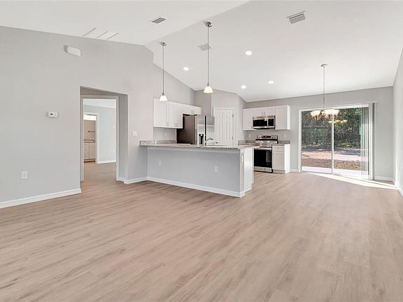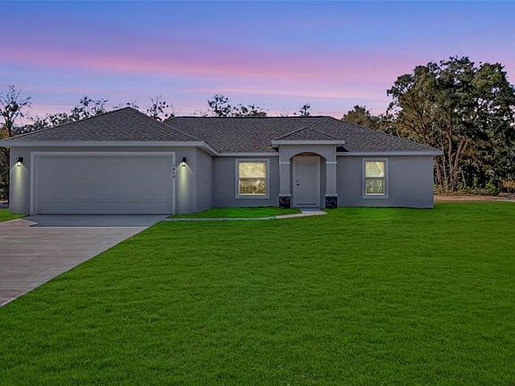 BRAND NEW! - EASILY OBSERVABLE AND BETTER VALUE! This Beautifully appointed 3 Bedroom, 2 Bath, split bedroom HOME is 100% MOVE-IN READY.....Complete with WINDOW TREATMENTS! Nestled on a .99 acre, semi-private homesite in Rainbow Lakes Estate, 1060 Sands Point Ave, Dunnellon, boasts 1,880 Sq. Ft. of fabulous features and upgrades! Featuring; well, septic and plenty of room for a pool. This HOME offers an attractive hip roof, front entry, accent stone at the columns, two-car garage, block construction, hand troweled stucco finish, double pane insulated windows, and colonial style windows on the front elevation. As you enter this open and spacious, split bedroom home, you are welcomed into 1,407 sf. ft. of living space, vaulted ceilings, interior laundry room with washer and dryer hook-ups, linen closet and shelving. Enjoy this lovely kitchen with gorgeous granite, double under-undermounted stainless steel kitchen sink, pull-out faucet, white cabinetry, self-close doors and drawers, decorative hardware, and stainless-steel appliances (side by side refrigerator with ice-make and water in the door, microwave, dishwasher, glass stop range and disposal). Luxury Vinyl flows throughout the home. The primary suite offers a large walk-in closet and the primary bathroom showcases a double "adult height" vanity, granite countertops, undermounted sinks, and tiled shower. The other two spacious guest bedrooms, each offer a walk-in closet, light (pre-wire for fans) and share the guest bathroom. The guest bathroom features an adult-height vanity, granite countertops, undermounted sink and ceramic tiled tub/shower. This home is MOVE-IN READY! enjoy your evenings with family and friends grilling out on the rear patio. One more bonus feature....Builder installed a water conditioning system!! Let's make this HOME YOURS! CALL TODAY!