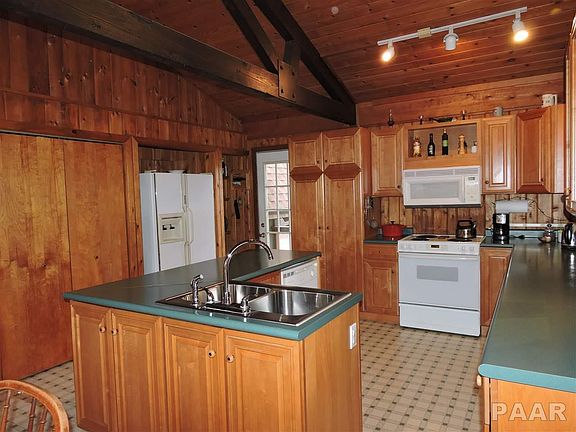 Spectacular A Frame style home with a beautiful setting! Lower level is a walk out. Spacious rooms with vaulted wood beamed ceilings, an open floor plan, newer kitchen with awesome storage, lots of windows and glass doors to keep the home connected with the large deck, and a serene setting are just a few of the features. Convenient location with an easy 11 mile drive to Macomb.