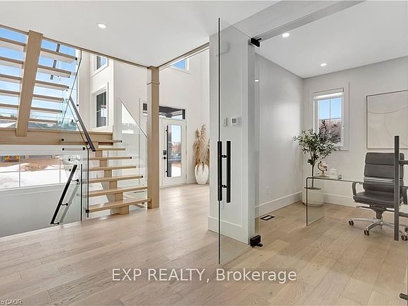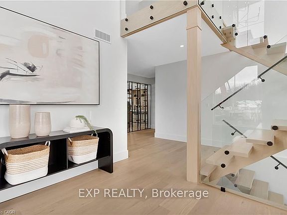 Welcome to an extraordinary expression of modern luxury, where architectural elegance & functional design merge seamlessly. This bespoke Cailor Homes creation has been crafted w/ impeccable detail & high-end finishes throughout, Situated on a one of a kind secluded tree lined lot. Step into the grand foyer, where soaring ceilings & expansive windows bathe the space in natural light. A breathtaking floating staircase w/ sleek glass railings serves as a striking architectural centerpiece. Designed for both productivity & style, the home office is enclosed w/ frameless glass doors, creating a bright, sophisticated workspace. The open-concept kitchen & dining area is an entertainers dream. Wrapped in custom white oak cabinetry & quartz countertops, the chefs kitchen features a hidden butlers pantry for seamless storage & prep. Adjacent, the mudroom/laundry room offers convenient garage access. While dining, admire the frameless glass wine display, a showstopping focal point. Pour a glass & unwind in the living area, where a quartz fireplace & media wall set the tone for cozy, refined evenings. Ascending the sculptural floating staircase, the upper level unveils four spacious bedrooms, each a private retreat w/ a spa-inspired ensuite, heated tile flooring & walk-in closets. The primary suite is a true sanctuary, featuring a private balcony, and serene ensuite w/ a dual-control steam shower & designer soaker tub. The fully finished lower level extends the homes luxury, featuring an airy bedroom, full bath & oversized windows flooding the space w/ light. Step outside to your backyard oasis, complete w/ a custom outdoor kitchen under a sleek covered patio.