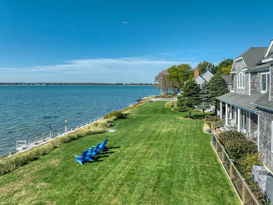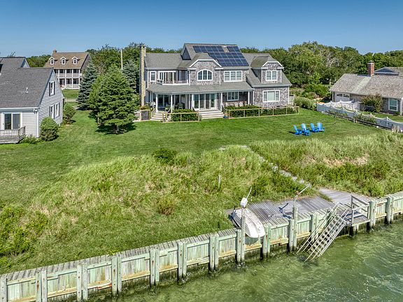 Rental Registration #: 0595 STUNNING BAYFRONT Local Art Filled Home, with Mooring (Boat Lovers Welcome), Private BAY Beach and 5 min WALK to VILLAGE! Over 4500 sqft of immaculate contemporary, gorgeous furnishings with a local artist's own artwork make this home perfect for your own enjoyment and summer entertainment. The only bayfront rental fully set up for your boating and swimming needs. Light, bright and mint, 4 super spacious bedrooms, 4 baths (200-degree water views), tons of additional family entertainment and hangout rooms (indoor and outdoor), double outdoor shower, gardens filled with blooms and a lot more. Beautiful classic lines and architectural details throughout. Walls of windows and high ceilings showcase stunning sunsets year around over Orient Harbor and beyond. Gourmet kitchen, open floor plan with glass doors to outdoor dining area, waterside lawn, two decks and stairs to the water makes this a perfect opportunity for entertaining and family relaxation - walk down your steps to swim, paddleboard, boat or fish. Electric winch, tender, close mooring. Bring your own or easily rent a boat from one of the local marinas. Rental includes a gas grill, 2 boat moorings and nearby association sandy beach. This very well-appointed home includes an open fireplace, perfect for an extended stay throughout the fall and beyond in an idyllic location that beckons peace and relaxation surrounded by nature and luxury. June $20,000; July $40,000; Aug $50,000; Sept $30,000. Permit# 0595