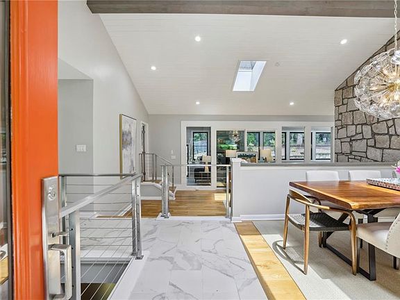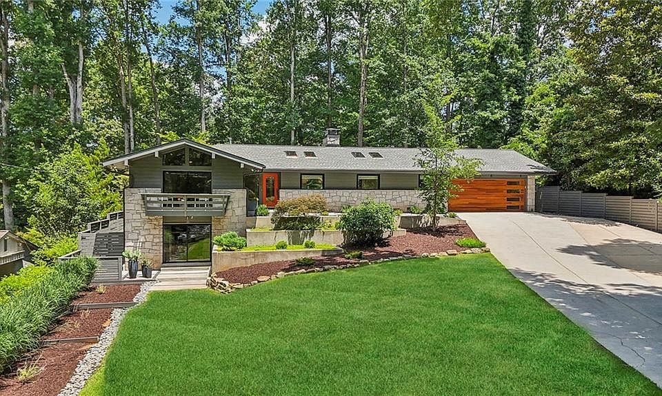 Welcome to this fully renovated, light-filled mid-century retreat, nestled in the highly desirable Riverside neighborhood of Sandy Springs. Reimagined with style, function, and comfort in mind, this home features a spacious open floor plan, high-end finishes, and thoughtful upgrades throughout. Step inside to discover expansive living spaces bathed in natural light from oversized windows, skylights, and sliding glass doors that frame serene backyard views. The heart of the home is the new gourmet kitchen outfitted with Cambria countertops, stainless steel appliances, and added pantry space—all overlooking the elegant dining area and living spaces. An impressive 600-square-foot addition off the back of the home introduces even more living space with soaring ceilings, a striking stone fireplace, and windows that bring the outdoors in. Enjoy the serene patio space and the private fenced backyard - a true outdoor sanctuary with lush landscpaing, a fire-pit and plenty of room for relaxing or entertaining. The main level further includes a spacious primary suite with walk-in closet and a beautifully updated primary bath with heated floors, skylights and marble shower. The fully finished walkout, daylight basement offers incredible flexibility—perfect as a nanny or in-law suite—with a kitchenette, full bath, bedroom, living area, and additional storage. A newly added 2-car garage provides convenience and extra storage, while the widened driveway allows for additional parking. Every detail of this home has been carefully curated for modern living—combining contemporary elegance with practical luxury in a peaceful setting.