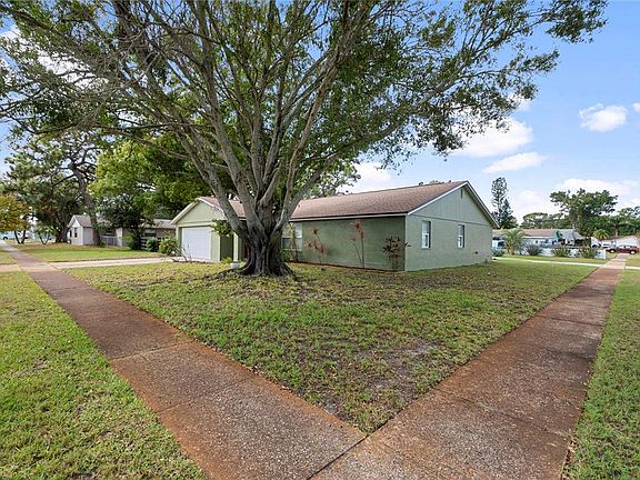 Welcome home to this fantastic 4-bedroom, 3-bathroom, 2- car garage home in Seminole! This residence sits on a nice sized corner lot and is located on a street with sidewalks and streetlights. Step inside and fall in love with this light and bright gem, it features two living areas, an open kitchen design, an inside laundry room, and split bedrooms. The master bedroom is a retreat unto its own, it is sized at 22'6" X 14'6" and features a 10'6" walk-in closet! There is also an additional bedroom suite with a private bathroom. When the owner is a master wood worker, you can assume updates to this home are numerous, and they are! Starting with the full custom kitchen, designed and built by the owner, featuring all wood cabinetry and granite counter tops, custom wood trim around all windows, doors, and base trim, a custom TV/fireplace built-in, full bathroom remodels, engineered wood flooring, and hurricane rated impact windows throughout. Also, the house was just painted inside and out. Step outside and see where this home really shines, there is a nice sized side yard featuring a custom built shed, plus a large side yard on the other side of the home, the perfect place for a boat or RV. There is a well and sprinkler system for all your yard watering needs. Additional benefits to this home's location are the Pinellas Trail at the front of the community and the back entrance to Walsingham Park at the back of the community. NO FLOOD ZONE, NO EVACUATION ZONE!!! Hurry do not miss this one!!!