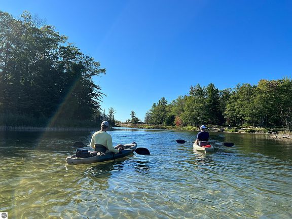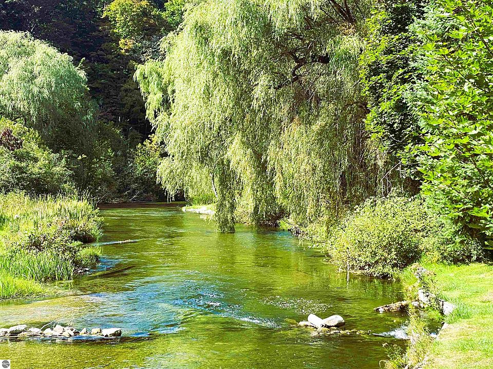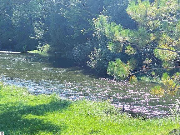 2.3 acres with nearly 800’ of frontage on the Platt River with mixed-use zoning. (Think resort cabins) Or park your airstream and enjoy the relaxing tubing, kayaking, or canoeing on this scenic meandering blue ribbon trout stream. Or build your dream home or vacation getaway. Whatever you wish, this setting allows you to be surrounded by nature, wildlife, and picturesque landscapes while being blocks from the village, and just 15 miles from Traverse City. Use the driveway at the west for access. The property line is just past the driveway.