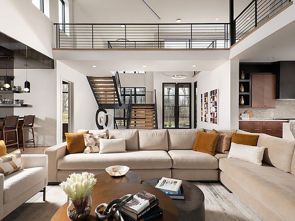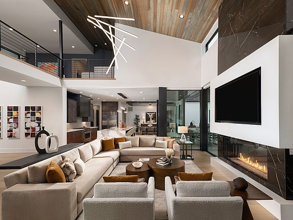 Clean, modern and content in its landscape, this contemporary home offers high-end luxury and spacious style. A great room, awash in natural light, features a soaring vaulted ceiling, while large windows and pocketing glass doors open to a wraparound deck with fireplace. The gourmet kitchen with island seating has the best view in the house. An elegant U-shaped staircase with floating treads, black railing and horizontal balusters connects private bedroom suites on the second story to a large entertainment room with patio on the lower level. NOTE this is a builder model and TO BE SOLD AS A SALE WITH 18 MONTH LEASEBACK.