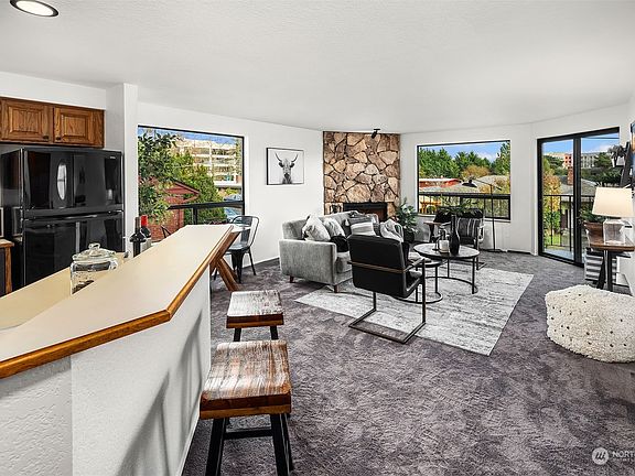 This east-facing corner unit combines spacious living, abundant natural light, and unbeatable transit access. The open floor plan features a large kitchen overlooking a bright living room with a stone wood-burning fireplace and wrap-around deck; ideal for relaxing or summer barbecues. The owner’s suite includes a luxurious jetted tub & shower, creating a private retreat. Amenities include an in-unit washer/dryer, secured garage parking, and a large storage unit. Near I-5, the Northgate Transit Center, and the new pedestrian bridge to Northgate Station, you’ll enjoy easy access to Kraken Iceplex, shopping, dining, entertainment, and light rail for seamless commutes to downtown Seattle, the airport, and beyond, theaters, restaurants and more!
