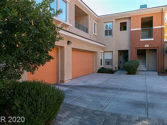 Gorgeous Summerlin luxury condo community located minutes from everything in Summerlin including Red Rock Casino, downtown Summerlin, Costco, parks and hospitals. Spacious floor plan with carpet, luxury vinyl and tile floors throughout unit. Spacious kitchen w/granite countertops, and 2 yrs old stainless steel appliances. Large master bedroom w/double sink & w/separate tub & shower. Neutral paint throughout. Large balcony, tinted windows, and fireplace to the open space of the living room. A/C only 2 years old, large storage unit, 2 car garage (not tandem), and wood shutters throughout. HOA pays for water & trash. Community pool / spa heated. Red Rock National path for walking or jogging.