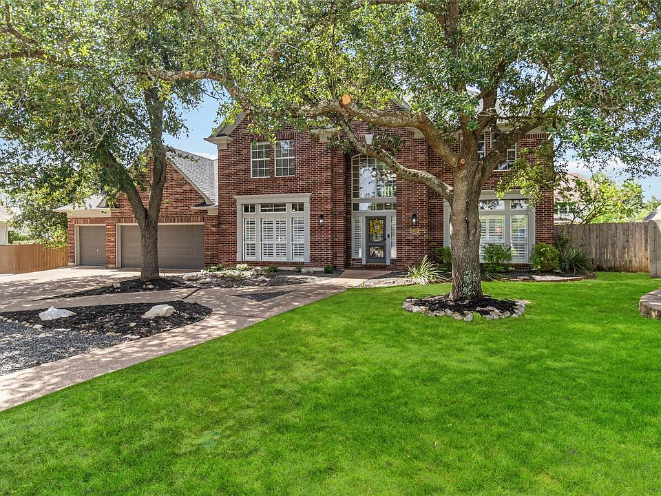 Welcome to 10601 Showboat Cove, a stunning 5-bedroom, 4-bathroom residence gracefully situated in a tranquil cul-de-sac within the highly sought-out River Place community. This 3,571 sq ft home has been meticulously transformed with over $200,000 in lavish upgrades, blending modern design with Hill Country charm for a truly move-in ready masterpiece. With refined interiors & unrivaled upgrades, the expansive two-story layout is designed for sophisticated living. The open-concept living area boasts soaring ceilings and abundant natural light, centered around a cozy fireplace. The chef's kitchen is a culinary dream, showcasing a dramatic quartz island, stainless steel appliances, wine refrigerator, and a walk-in pantry. Indulge in the luxurious main-level primary suite, a private sanctuary with dual vanities, a glass-enclosed shower, and two walk-in closets. The main level also boasts a secondary guest suite with a full bath, perfect for visitors or multigenerational living. Upstairs, find three additional spacious bedrooms, two full bathrooms, and a dedicated media room. This home boasts a comprehensive list of high-end upgrades, including fully remodeled kitchen and baths, new AC, roof, water heater, windows, garage doors, luxury carpet, LED lighting, designer fixtures, plantation shutters, fans, and much more! Situated on a beautifully landscaped .4 -acre lot with mature trees, there is ample space for a pool and outdoor kitchen. The expansive patio deck offers the perfect setting for serene mornings or sunset evenings. Beyond your private haven, embrace the highly esteemed River Place lifestyle. You're just minutes from top-rated River Place Elementary, Sun Tree Park, the Nature Trail, and the exclusive River Place Country Club, offering world-class golf, tennis, and social amenities. This is more than a home; it's an invitation to experience the pinnacle of luxury and Hill Country living!