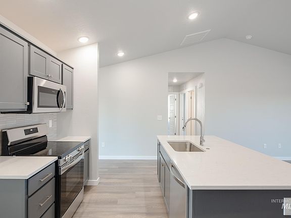 Embrace the comforts of a brand new home in Star, Idaho. The Chandler 1447 is the perfect house for anyone who is looking for a cozy, comfortable atmosphere. The primary suite is situated at the rear of the home and contains an en suite bathroom and walk-in closet, perfect for a good night's sleep or a lazy weekend morning. The highlight of the house, however, is the large living/entertaining space. With an open floor plan, you'll have plenty of room to curl up with a book, watch a movie, host a dinner party, or just relax. The kitchen comes with stainless steel appliances and stylish solid surface countertops, adding both functionality and aesthetics to the kitchen. The outdoor spaces are perfect for hosting barbeques on warm summer days or just enjoying a morning cup of coffee in the fresh air. Photos are similar. All selections are subject to change without notice, please call to verify.