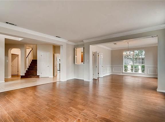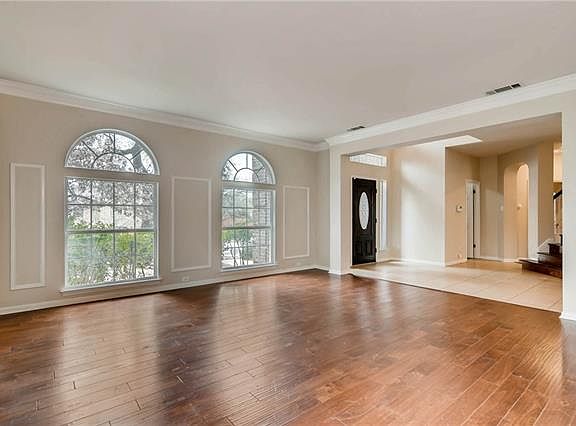 Beautiful 2 story, 5 bdrm, & 3 full bath home w/all 4 sides brick, ageless elevation & floor plan, and great natural light throughout home! Gorgeous hand-scraped wood floors in family, formal living, & formal dining rooms! Crown molding, wall frames, & chair rails in formal spaces add that finishing touch. Granite counters, high ceilings, sprinklers, deck...Bdrm down is great for multi-generational families, guests, or office. Recent (Feb 2018) int & ext paint. Attic space can be finished out. RRISD