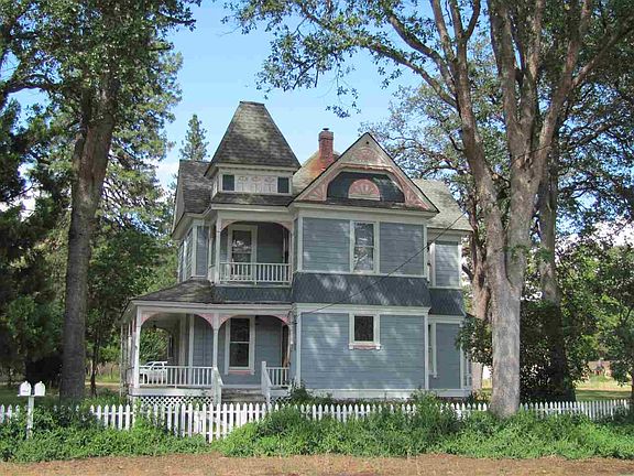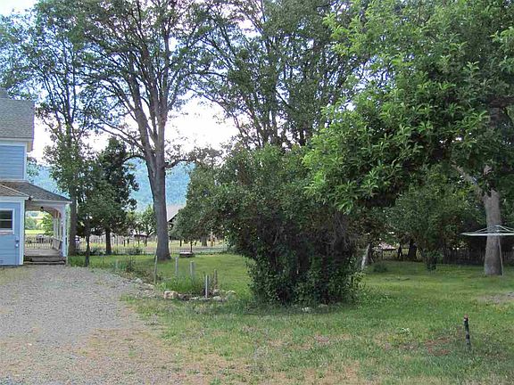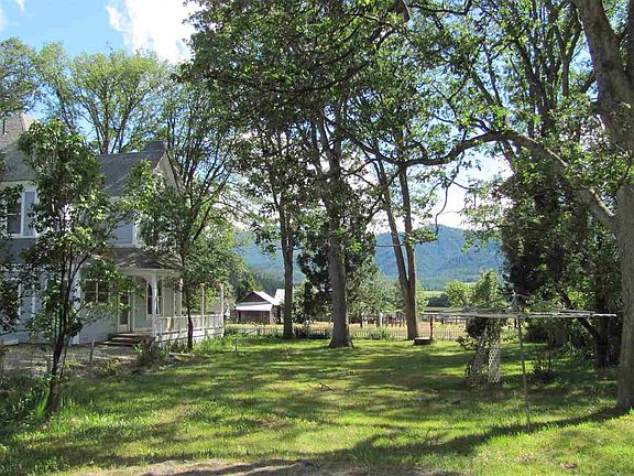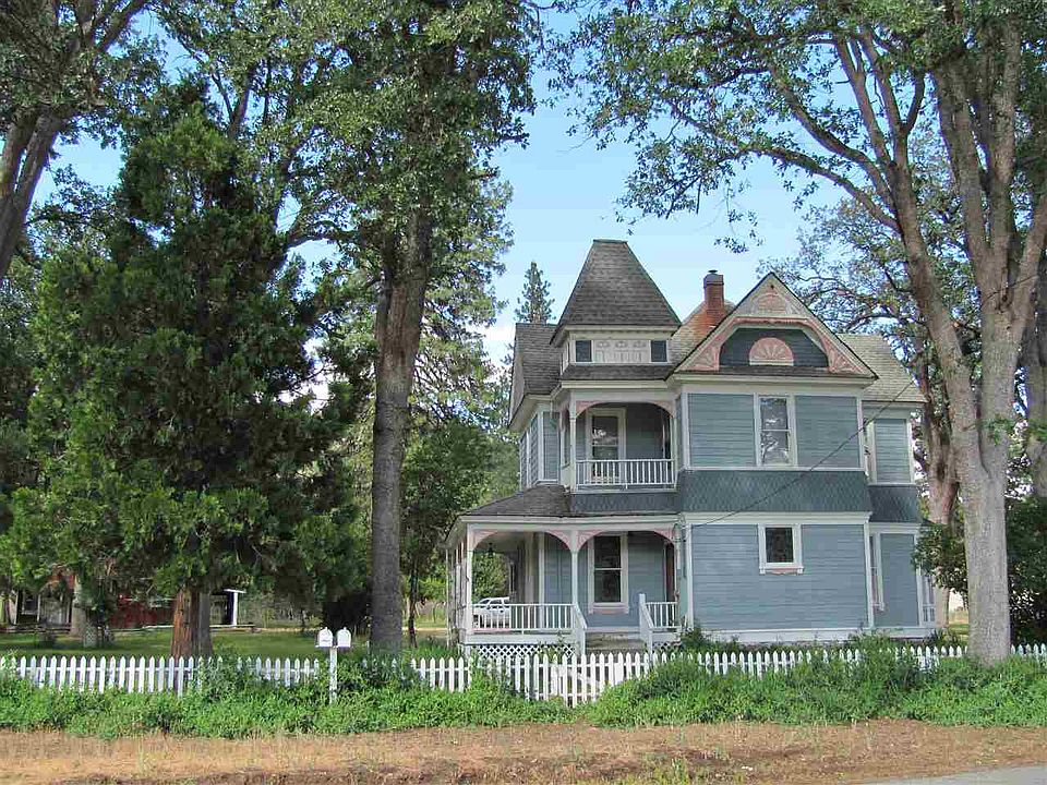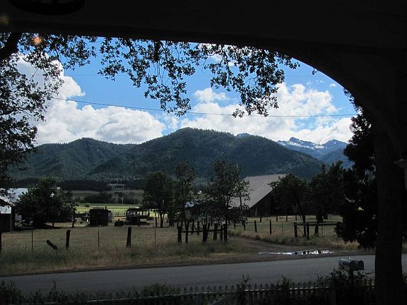 Beautiful location in quaint Mugginsville on approx. 2 acres. Sit out under the wrap around porch and look out on the shady green yard and beyond the gorgeous valley and mountains. Large Victorian era home with country kitchen, formal dining room with built in china hutch. Hardwood floors in living room with wood stove. The parlor has monitor heating. New fixtures in downstairs bath including soaking tub and pedestal sink. Two stair cases to upstairs with four bedrooms and 1 1/2 baths. Views out of each bedroom. Guest cabin outback (potential rental) has 1 bedroom 1 bath with carport. Double car garage. Great garden area with fruit trees and wood storage. Has a lot of possibilities for animals as well. Owner may carry to a qualified buyer, with significant down and negotiable terms. NOTE: The accuracy of the information provided is deemed reliable, but is not guaranteed, is subject to change and should be independently verified.