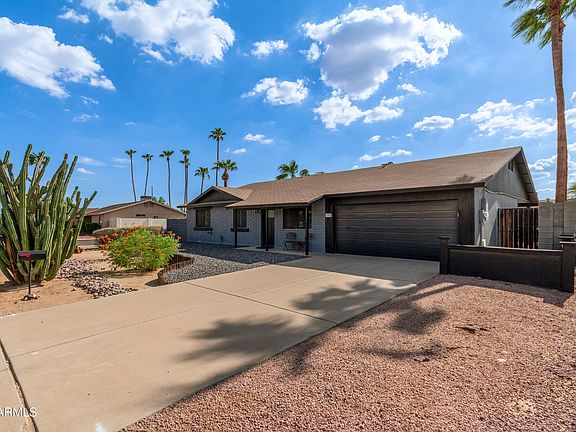 Your corner-lot retreat is ready to impress! This beautifully updated home welcomes you with wood-look flooring and a bright, inviting living room. The family room is perfect for memorable evenings, complete with a warm fireplace. In the heart of the home, the stylish kitchen shines with stainless steel appliances, granite countertops, neutral cabinetry, and a breakfast bar. Effortless hosting continues with your very own wet bar and wine cooler. The spacious primary suite is a luxurious escape, featuring a custom barn door that opens to a spa-like bathroom with dual sinks and a sleek walk-in shower. Step outside to your backyard oasis, a covered patio & gorgeous turf. The spacious yard is framed by stunning mountain views that make every sunset unforgettable.