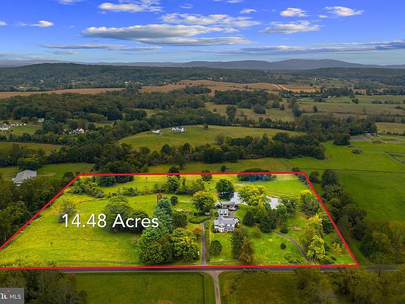Welcome to this 1905 Colonial farmhouse set on 14.5 picturesque acres in the heart of Marshall’s horse and farm country. This special property blends historic charm with practical updates, offering over 3,600 square feet of living space, 4 bedrooms, and 3.5 baths. Inside, the home showcases original pine floors, intricate millwork, and an ornate oak staircase. The rooms are impressively spacious for the era, from the inviting living room with a wood-burning fireplace and custom built-ins, to the formal dining room that radiates warmth and history. The kitchen, thoughtfully remodeled in 1978, still retains a nostalgic farmhouse feel with its Viking double wall oven, solid-surface countertops, wood cabinetry, and whimsical seed-packet wallpaper. A side stairway to an upstairs bedroom is a charming reminder of the home’s early roots. Upstairs, you’ll find generously sized bedrooms, including a primary suite with vaulted ceiling, wood stove, two walk-in closets, and a private study with built-ins and a balcony overlooking Cobbler Mountain. Outdoor living is just as appealing, with sweeping views from every angle. Unwind on the wide covered porches with flagstone floors, or gather with family and friends for lawn games in the spacious front yard. Gardeners will love the fenced vegetable plot, herb garden framed by stone walls, and rows of raspberries, blackberries, and blueberries. The grounds also feature a stocked spring-fed pond, meandering creek with stone walls, and an English garden with walking path and bridges. Additional highlights include a circular paved driveway, oversized two-car garage with workshop space and upstairs hobby room, a rear patio with quaint potting shed, a second shed near the fenced garden, plus a barn for equipment or storage. The property is currently in land use, with neighboring cattle grazing the pasture—an option the new owner may continue for tax savings. This is a rare opportunity to own a timeless farmhouse retreat with both history and heart—just minutes from the restaurants, specialty shops, and small-town character of Marshall’s Main Street.