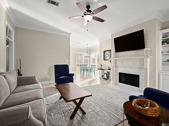 Located in the Spring Hill subdivision, this home has major curb appeal with a beautiful magnolia tree in the front yard and a huge oak tree in the backyard—like the kind of shade you dream about in Louisiana summers. When you walk in, the foyer instantly feels elevated with all the architectural details, including door transoms with windows, plus custom crown molding that gives the whole place that “nice home” feel without trying too hard. The living room is cozy but still open, featuring a gas fireplace with a wood mantel and a built-in bookcase, and it flows right into the dining area and kitchen—so whether you’re hosting friends, watching football, or just trying to cook dinner without being cut off from everyone, it totally works. And the kitchen? It checks every box: ? solid surface countertops ? center island ? stainless steel appliances ? built-in microwave ? dishwasher ? walk-in pantry (aka the feature you don’t know you need until you have it) The primary suite feels like a private little retreat with a spacious bedroom and an en suite bathroom with a double vanity, linen tower, walk-in closet, stand-up shower, and an oversized soaking tub (yes, the kind you’ll actually use). The guest bathroom also has a double vanity and a shower/tub combo, which makes mornings way easier when people are getting ready at the same time. Outside is where it really wins: the fenced backyard is perfect for pets, kids, or just having your own space, plus there’s an open patio for grilling and hanging out. You also get a double carport, breezeway to the carport, and a storage room, and the iron gate across the driveway gives extra privacy and security. And the location is super convenient—close to shopping, restaurants, retail, and LSU, and you still get the neighborhood feel with community amenities, including a pool and playground. Honestly… it’s the kind of house that feels easy to live in, easy to love, and in the perfect spot.