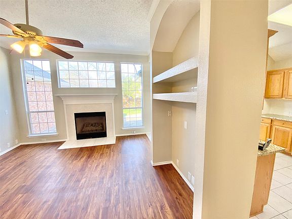 Beautiful Home in a great Frisco ISD neighborhood. Featuring an open design with the kitchen overlooking the breakfast nook. Charming fireplace for cold winter month. Lots of windows for natural lights. Separate dining room with sitting or office space that looks out to the front neighborhood. Luxury wood laminate flooring throughout main living areas, ceramic tile in baths, and plush carpet in bedrooms. Private master with French doors, spacious master bathroom, garden tub, and separate shower, double vanities, and walk in closet. Relax on the designed concrete stamped patio. Full utility room leads to 2 car garage. This home also offers community pool, Shawnee Trail Sports Complex, tennis courts, baseball fields, parks, and walking trails.