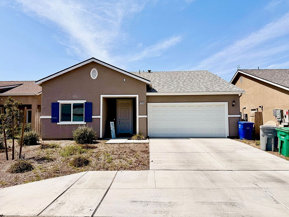 Welcome to this like new build in Armona! Enjoy a spacious, open-concept layout perfect for entertaining. Features 3bedrooms and 2 bathrooms, and is the perfect blend of contemporary design and modern finishes. The kitchen has granite counters, stainless appliances, and a pantry. There is wood look laminate flooring in all main areas with carpet in the bedrooms. Benefit from low utility bills with energy-efficient appliances and solar. Located just 15 minutes from NAS Lemoore and a quick 5-minute drive to local shopping, dining, and grocery stores, this home offers the perfect balance of quiet suburban living and easy access to all the essentials.