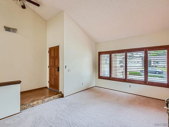 Quiet location.. North end of Strathmore Drive overlooks the Santee Recreational Lakes area..Fanita Ranch development (built in 1985).. 3 Bedrooms, 2 Baths + Entertainment size living room featuring vaulted ceiling & Fireplace.. Light and bright Family Room features vaulted ceiling ...Spacious kitchen with cabinets galore.. Relax on patio area and enjoy view of mountains and surrounding area.. Central A/C & Forced-air heating.. PAID SOLAR-ENJOY THE BENEFITS WITHOUT THE COSTS..2 car garage.