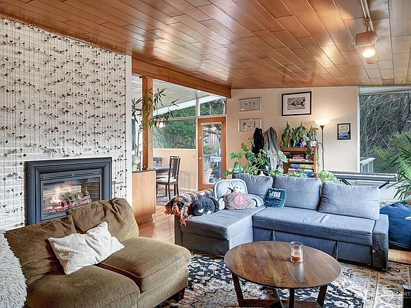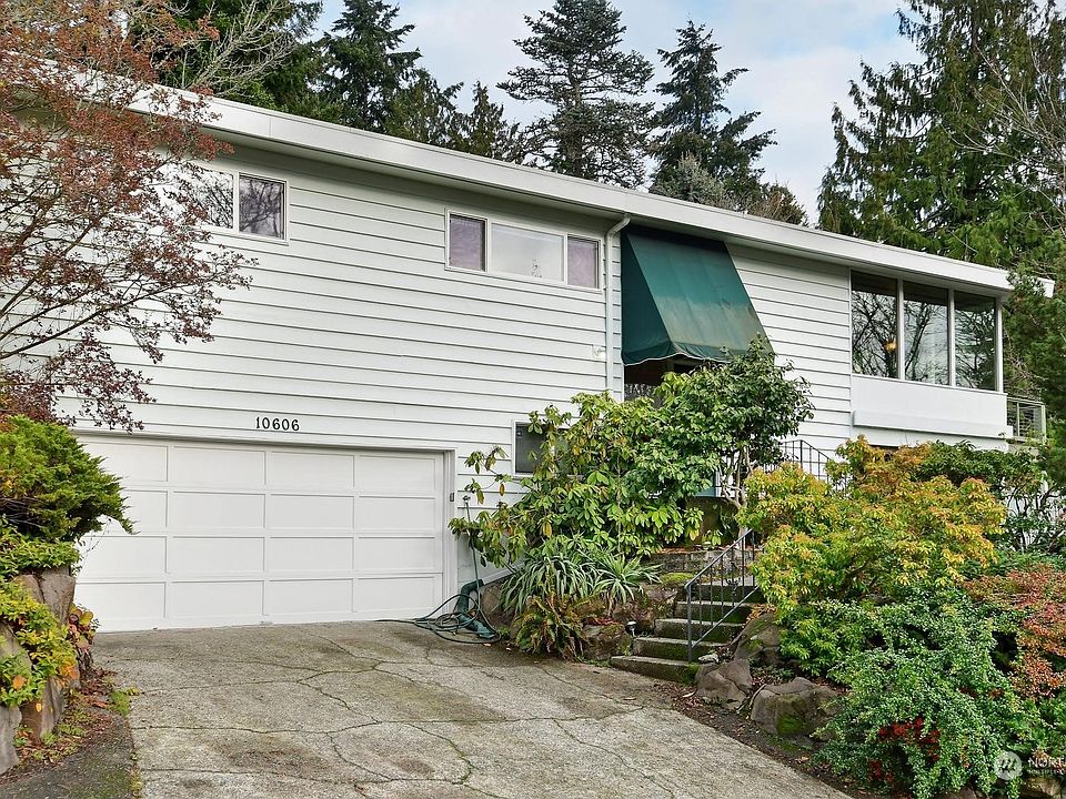 Set high above the street, this private, light-filled home takes maximum advantage of the surrounding territorial views. Upon entering you are greeted with gleaming hardwood floors, large windows, a cozy gas fireplace & NW woodwork. The beautifully remodeled kitchen complete with gas range & SS appliances flows to the dining area, deck, & patio. You will love the serene feeling of the primary bedroom with its own 3/4 bath & windows overlooking lush greenery. Enjoy the comfort of heated tiled floors in both upstairs updated baths. Lower level offers a family room with FP, office, 1/2 bath & large utility room with lots of storage space plus room for a shop/hobby area. In sought-after Meadowbrook, just a few blocks to Sand Pt Way & Lake WA.